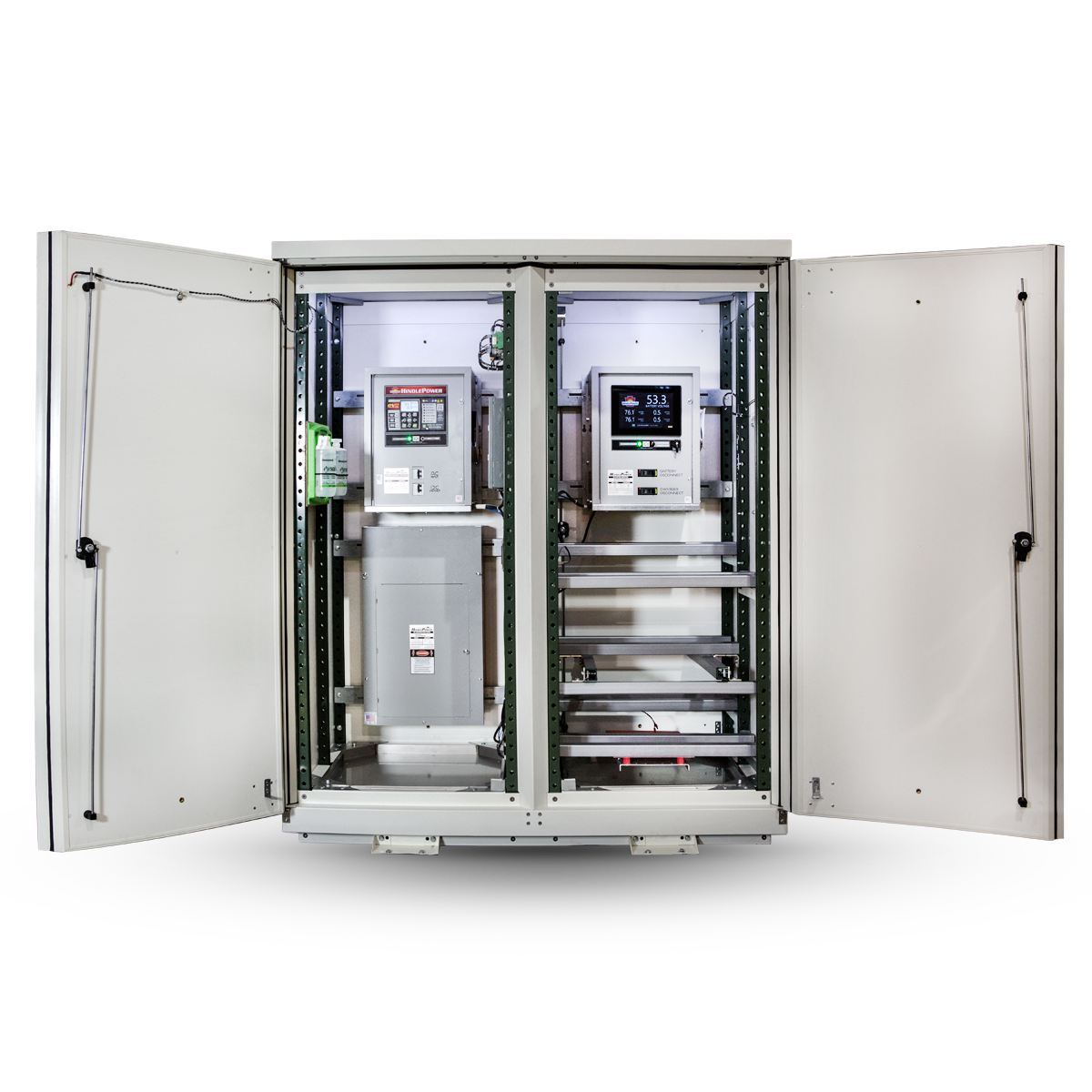 HindlePower’s EPIC Series Console 2.0 is designed to maximize DC system performance and battery life, saving YOU time and money. This NEMA 3R modular enclosure, with built in intelligence, will safely house any combination of batteries, chargers, DC distribution, and/or other ancillary equipment. Equipped with the HindleHealth System, the EPIC Series Console 2.0 will keep your battery at the ideal temperature in the most extreme of environments, giving you peace of mind.
